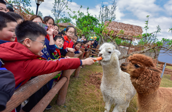出chu了le展zhan示shi廳ting,學xue生sheng們men興xing高gao采cai烈lie地di參can觀guan星xing火huo廣guang場chang,感gan受shou景jing區qu賞shang心xin悅yue目mu的de園yuan林lin藝yi術shu。在zai生sheng態tai園yuan內nei,師shi生sheng們men與yu呆dai萌meng的de羊yang駝tuo合he影ying,觀guan賞shang一yi隻zhi隻zhi開kai屏ping的de孔kong雀que,尋xun找zhao可ke愛ai的de小xiao鬆song鼠shu……能(neng)與(yu)動(dong)物(wu)們(men)如(ru)此(ci)親(qin)密(mi)接(jie)觸(chu),學(xue)生(sheng)們(men)歡(huan)呼(hu)雀(que)躍(yue)。在(zai)生(sheng)態(tai)魚(yu)池(chi)邊(bian),學(xue)生(sheng)們(men)體(ti)驗(yan)了(le)親(qin)手(shou)投(tou)喂(wei)錦(jin)鯉(li)的(de)快(kuai)樂(le),魚(yu)兒(er)圍(wei)著(zhe)魚(yu)食(shi)聚(ju)集(ji)遊(you)動(dong),水(shui)麵(mian)變(bian)得(de)五(wu)彩(cai)斑(ban)斕(lan),煞(sha)是(shi)養(yang)眼(yan)。