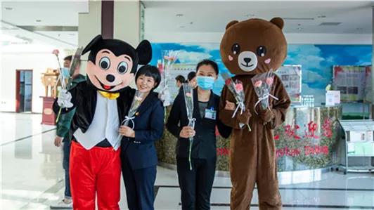 節jie日ri當dang天tian,公gong司si黨dang群qun工gong作zuo部bu員yuan工gong化hua身shen的de卡ka通tong玩wan偶ou,不bu僅jin出chu現xian在zai辦ban公gong樓lou,同tong時shi也ye趕gan到dao公gong司si大da門men口kou處chu打da卡ka,車che上shang剛gang下xia夜ye班ban員yuan工gong略lve顯xian疲pi憊bei的de臉lian上shang頓dun時shi露lu出chu了le暖nuan心xin的de笑xiao容rong,大da家jia紛fen紛fen說shuo道dao:“下班時間能收到公司的祝福,真的非常感動,給我們廣大女同胞了一個大大的驚喜!”女職工們還爭相與他們合影,並用手機記錄下了這一令人動容的時刻,現場塑造了一幅幅溫馨的畫麵。