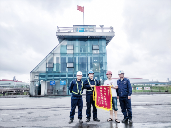 獲救船老大向方大九鋼員工送來錦旗