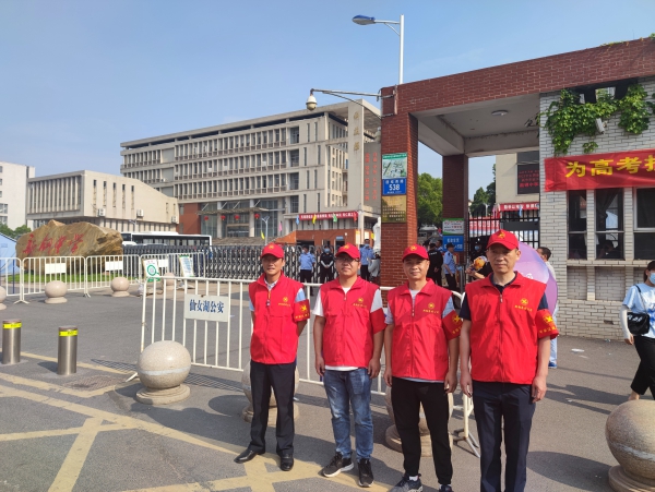 6月8日新餘鋼鐵集團有限公司綜治辦組織新鋼平安誌願者到新鋼中學高考考點,協助公安、交管等有關部門維護交通、車輛停放、人流疏導、幫助處置群眾急難問題等工作,竭力為高考學子們營造平安良好環境。圖為新鋼公司平安誌願者在現場義務執勤安保時情景。(張俊 劉東明)