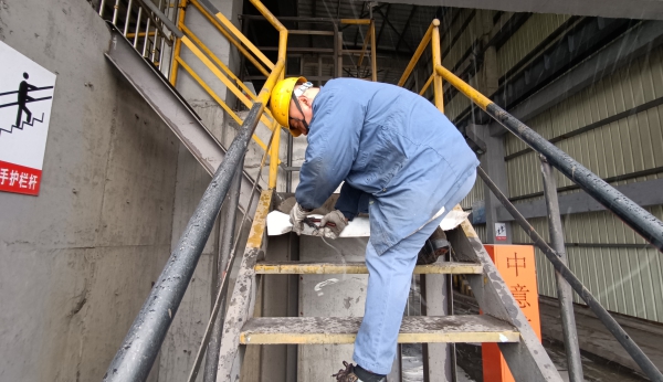 近期氣溫急劇下降,新餘鋼鐵集團有限公司檢測中心根據公司要求,認真做好“冬季五防”工作,加強安全保護措施,提醒室外作業、上下班騎車職工注意防滑摔跤。圖為原檢車間職工在南大門室外樓梯鋪設防滑布袋時情景。(張俊 鄒健)