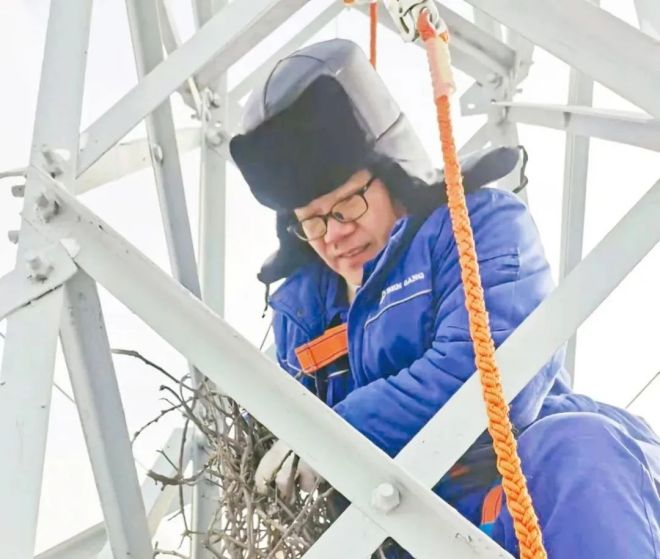 電塔高37米,在做好安全準備後,田憲輝一級一級慢慢爬上電塔,從導線、地線、金具、絕jue緣yuan子zi到dao塔ta身shen等deng都dou要yao一yi一yi檢jian查zha並bing做zuo好hao記ji錄lu。在zai檢jian查zha過guo程cheng中zhong,田tian憲xian輝hui發fa現xian塔ta身shen處chu一yi鳥niao巢chao,為wei避bi免mian鳥niao巢chao和he飛fei鳥niao對dui電dian力li係xi統tong的de影ying響xiang,他ta小xiao心xin翼yi翼yi拆chai除chu鳥niao巢chao,並bing將jiang其qi安an穩wen地di放fang在zai附fu近jin的de樹shu上shang,隨sui後hou和he工gong友you們men向xiang下xia一yi個ge電dian杆gan走zou去qu。