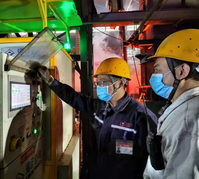 “老(lao)馮(feng),你(ni)讓(rang)咱(zan)們(men)職(zhi)工(gong),人(ren)工(gong)測(ce)一(yi)下(xia)鋼(gang)水(shui)溫(wen)度(du),我(wo)這(zhe)和(he)智(zhi)能(neng)大(da)屏(ping)上(shang)測(ce)溫(wen)機(ji)器(qi)人(ren)測(ce)溫(wen)顯(xian)示(shi)的(de)溫(wen)度(du)進(jin)行(xing)最(zui)後(hou)比(bi)對(dui),確(que)保(bao)溫(wen)度(du)準(zhun)確(que)性(xing),避(bi)免(mian)鋼(gang)水(shui)溫(wen)度(du)誤(wu)差(cha)造(zao)成(cheng)生(sheng)產(chan)質(zhi)量(liang)波(bo)動(dong)。”在煉鋼工序,我們找到了正在項目現場的王舉貴。