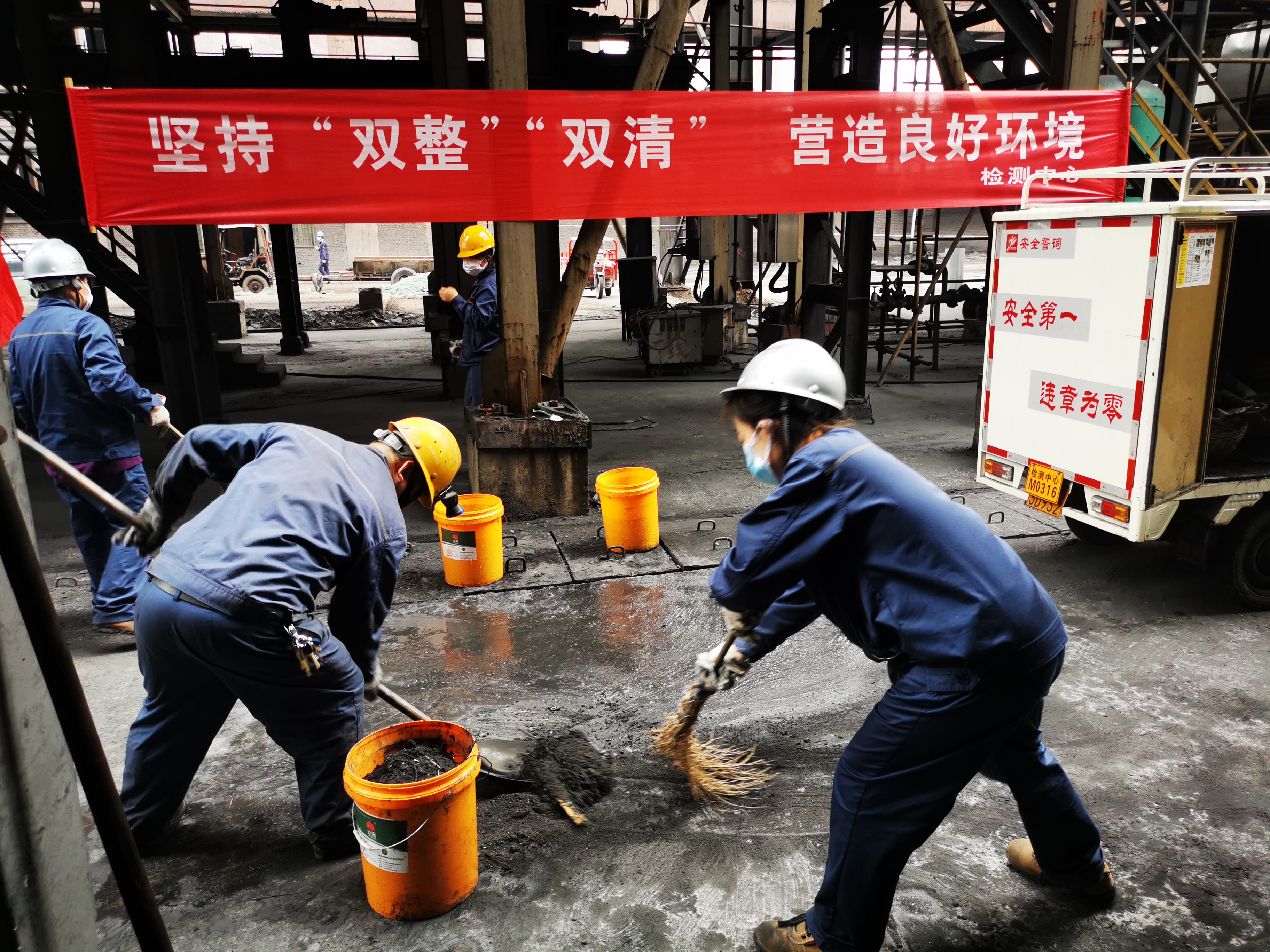 為紮實推進“雙基”管guan理li工gong作zuo,創chuang建jian幹gan淨jing整zheng潔jie的de工gong作zuo環huan境jing,近jin日ri新xin餘yu鋼gang鐵tie集ji團tuan有you限xian公gong司si檢jian測ce中zhong心xin開kai展zhan了le一yi次ci全quan員yuan改gai善shan日ri活huo動dong。機ji關guan黨dang員yuan幹gan部bu深shen入ru生sheng產chan一yi線xian對dui施shi工gong現xian場chang的de廢fei料liao等deng進jin行xing清qing理li整zheng頓dun。圖tu為wei機ji關guan幹gan部bu在zai鐵tie前qian檢化車間清理整頓時情景。(張俊 姚娟)