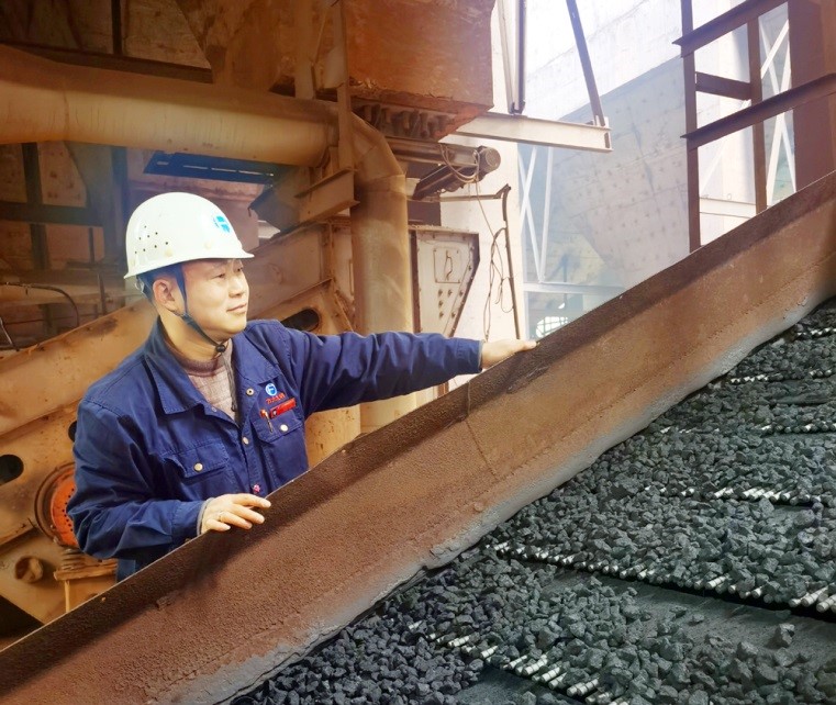 餘映紅檢查入爐料篩分情況