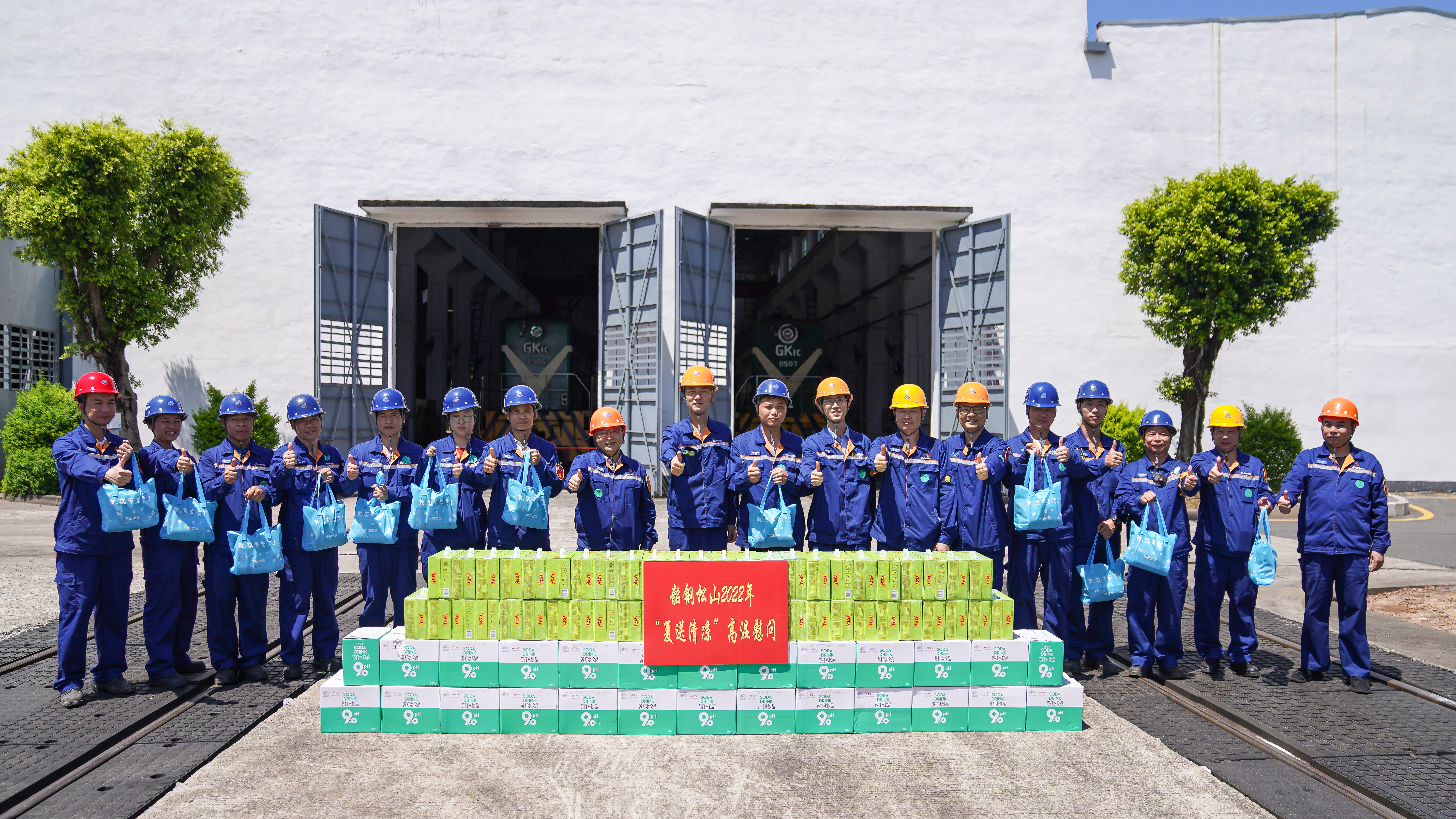 7月21日上午,韶鋼黨委書記、董事長解旗和副總裁包鋒一行到煉鐵廠高爐、物wu流liu部bu檢jian修xiu作zuo業ye區qu線xian路lu信xin號hao檢jian修xiu班ban工gong作zuo現xian場chang慰wei問wen。兩liang位wei領ling導dao與yu一yi線xian員yuan工gong們men親qin切qie握wo手shou,並bing為wei大da家jia發fa放fang防fang暑shu降jiang溫wen慰wei問wen品pin,感gan謝xie煉lian鐵tie廠chang員yuan工gong們men戰zhan高gao溫wen、奪高產,做優煉鐵各項指標,感謝物流部員工們為保障物流順暢、服(fu)務(wu)生(sheng)產(chan)主(zhu)業(ye)做(zuo)出(chu)的(de)突(tu)出(chu)貢(gong)獻(xian),希(xi)望(wang)大(da)家(jia)再(zai)接(jie)再(zai)厲(li),為(wei)韶(shao)鋼(gang)生(sheng)產(chan)經(jing)營(ying)繼(ji)續(xu)貢(gong)獻(xian)力(li)量(liang)。兩(liang)位(wei)領(ling)導(dao)叮(ding)囑(zhu)大(da)家(jia)要(yao)注(zhu)意(yi)防(fang)暑(shu)降(jiang)溫(wen),室(shi)外(wai)作(zuo)業(ye)盡(jin)量(liang)避(bi)開(kai)最(zui)熱(re)的(de)時(shi)間(jian)段(duan),下(xia)班(ban)注(zhu)意(yi)休(xiu)息(xi),保(bao)證(zheng)充(chong)足(zu)的(de)睡(shui)眠(mian),第(di)二(er)天(tian)以(yi)良(liang)好(hao)的(de)精(jing)神(shen)狀(zhuang)態(tai)上(shang)班(ban),確(que)保(bao)暑(shu)季(ji)工(gong)作(zuo)安(an)全(quan)。
