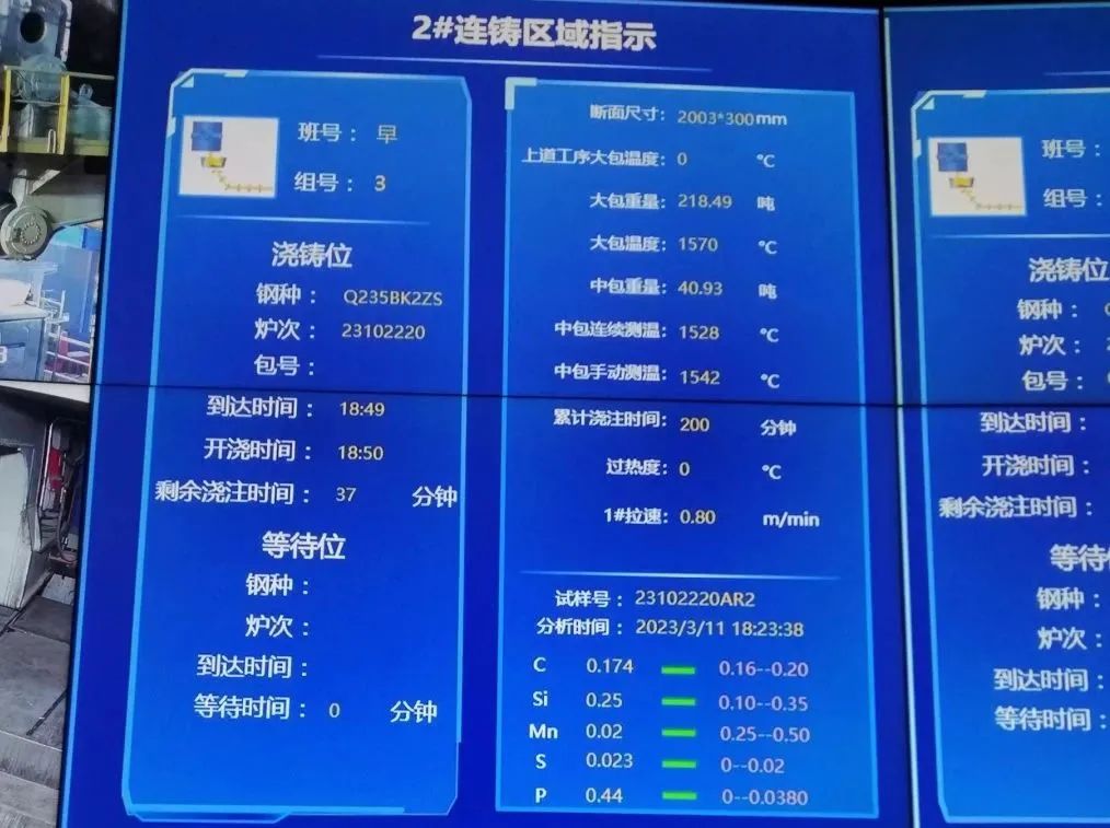 2022年因產品結構調整,該公司決定將原2#方坯連鑄機升級改造為板坯連鑄機,項目於2022年10月建成投產,初期主要由現場主控室進行控製操作。為了讓操作人員遠離高危崗位,保護人身安全,降低勞動強度,在製造管理部、設備管理部、煉鋼廠及寶信軟件等多方努力下,利用係統檢修為契機,引入遠程澆鋼、智慧澆鋼等一係列新技術、新設備,將模型控製係統、二級生產係統與操業集控中心區域進行對接,實現了操作畫麵與現場功能同步。