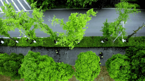 十裏鋼城裏鬱鬱蔥蔥的樹梢