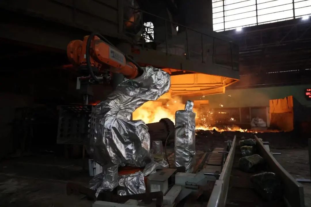 2022年,煉鋼廠二係列6號連鑄機成功投用全流程智能化機器人:連鑄機滑板油缸更換機器人、連鑄機覆蓋劑分揀機器人、多功能智能澆鋼機器人及2名鑄坯自動噴印機器人。
