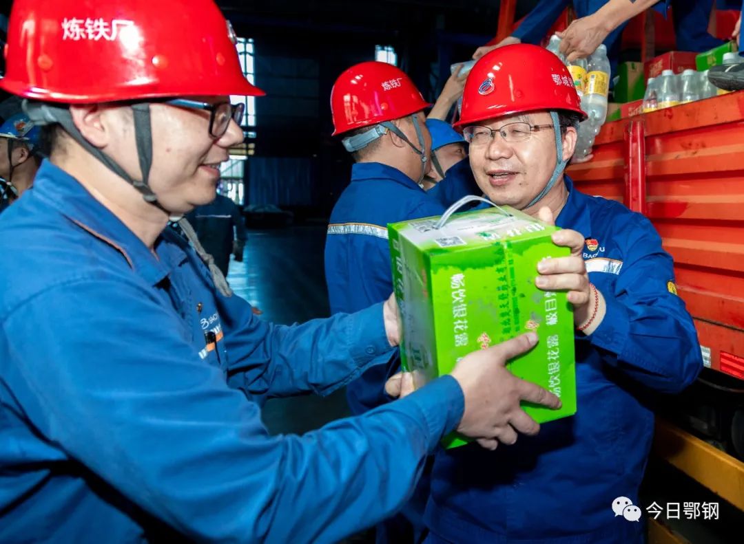 夏日炎炎,十裏鋼城廣大幹部員工依然奮戰在一線,7月27日一大早,鄂鋼公司領導分四組,深入生產一線,慰問在酷暑中堅守崗位的職工,把清涼送進現場,把關愛帶給職工。