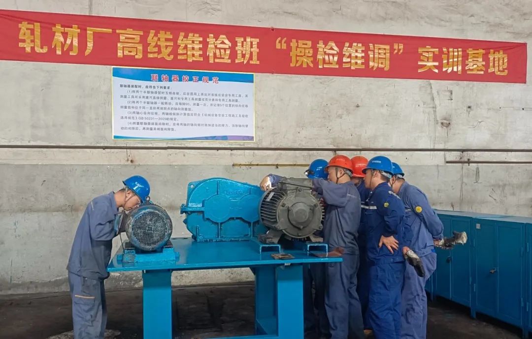 9月份,軋材廠高線產線操檢維調實訓基地建成。該實訓基地主要利用淘汰的舊設備,經維檢班成員使用“拆、卸、改、組、裝、調”六步法,曆經一個月時間在原高線機修間建成。建設過程沒有大額資金投入,也沒占用太多生產時間,更沒耗費過多人工,可謂“短、平、快”。
