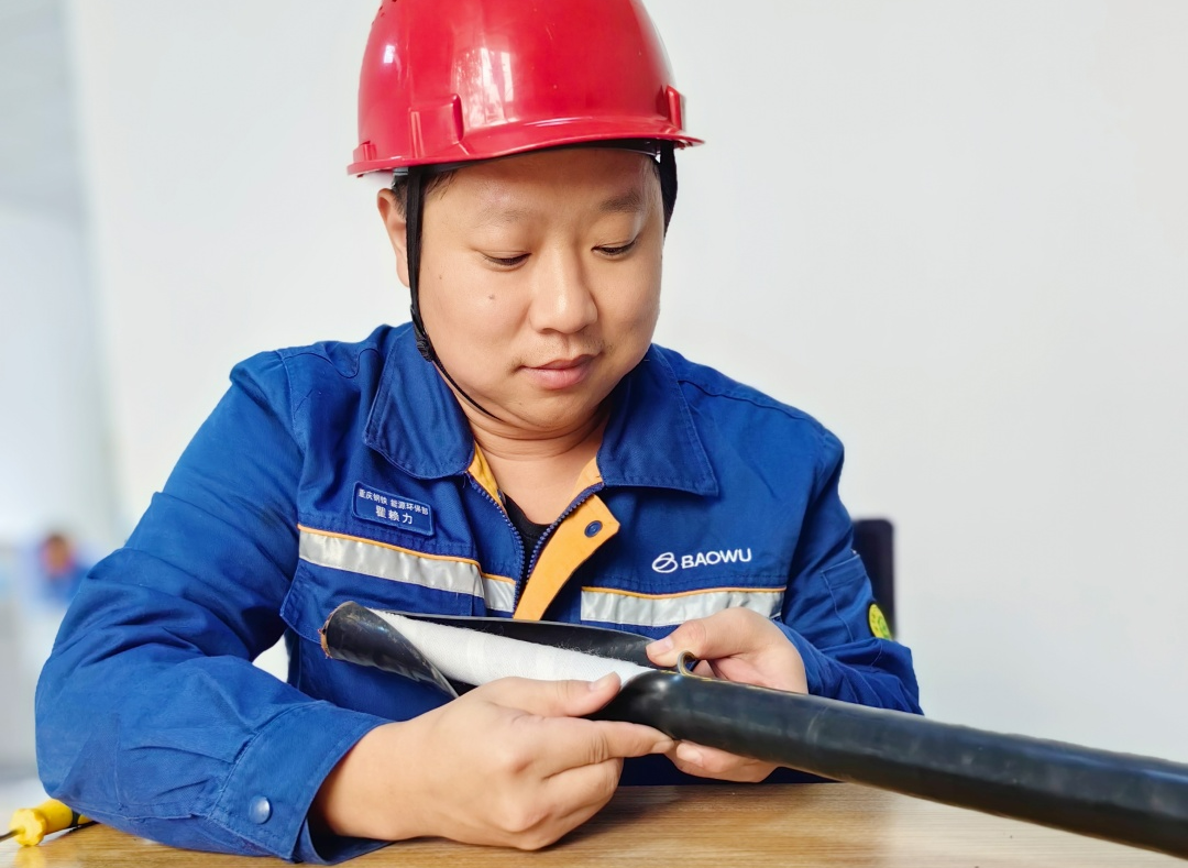 剝開電纜終端外護套、抽離半導電層、安裝應力管......短短40分鍾,瞿賴力憑借著嫻熟的技能,完成了10kV電纜頭製作工作。
