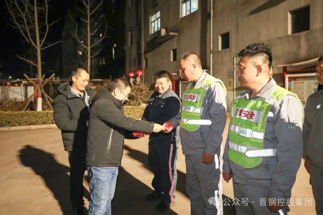 歲末天寒情意暖,殷殷關愛沁人心。2月9日,農曆除夕之夜,晉鋼控股集團副總經理蘇世傑,銷售總監唐元海、采購總監潘屹東等領導代表集團慰問堅守在一線的員工,為他們送上新春的問候和包裹著濃濃愛意的紅包。