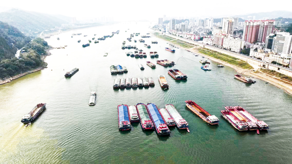 圖為柳鋼集團內河碼頭的裝貨現場。