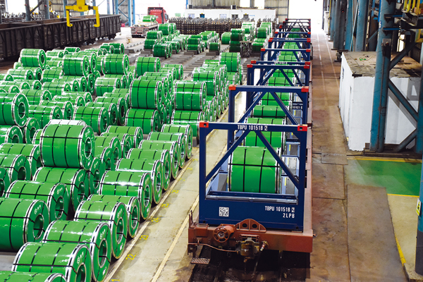 圖為柳鋼柳州本部冷軋廠正在組織冷軋產品裝載。