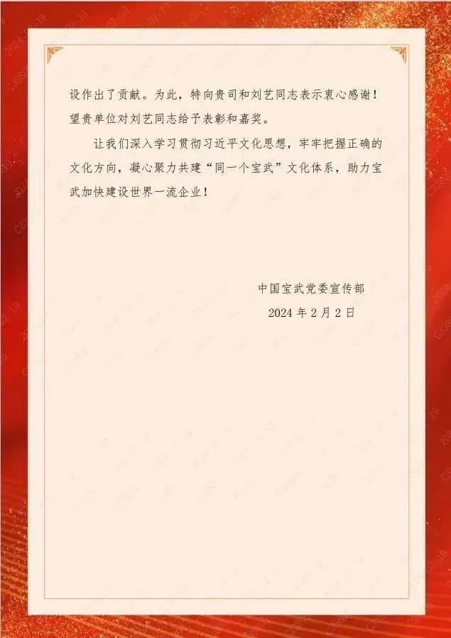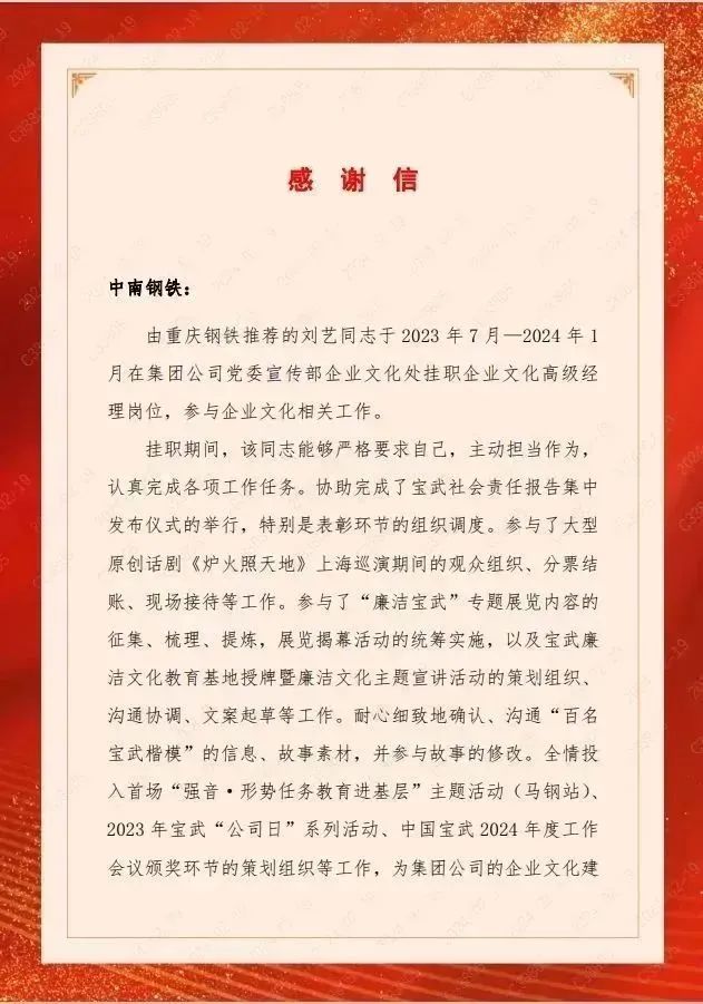 2023年7月,劉藝到寶武集團公司黨委宣傳部企業文化處掛職企業文化高級經理崗位。