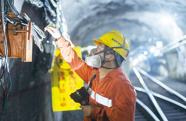 圖為馬鋼礦業張莊礦工人正在井下負480米處進行設備巡檢。