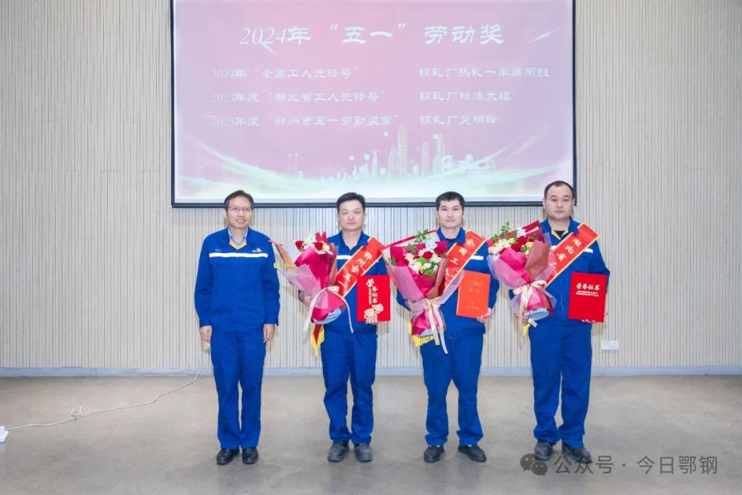 鄂城鋼鐵領導分別為“全國工人先鋒號”、“湖北省工人先鋒號”、“鄂州市五一勞動獎章”,寶武“五有”班組、創新型班組、效益型班組、安全“1000”班組”,以及公司優秀班組長現場表彰。還對班組長聯誼會進行授牌。