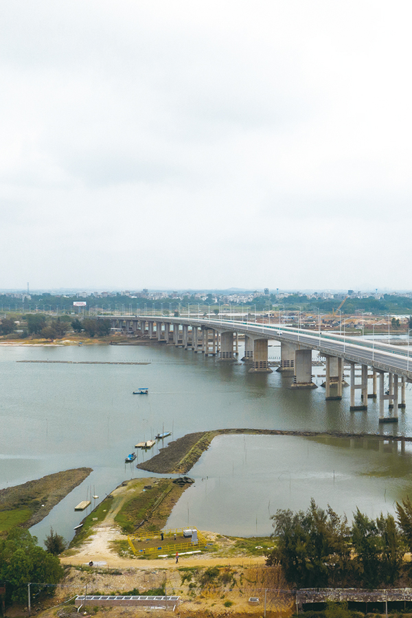 圖為坡頭鎮供水管網項目波海圍大橋頂管段現場。