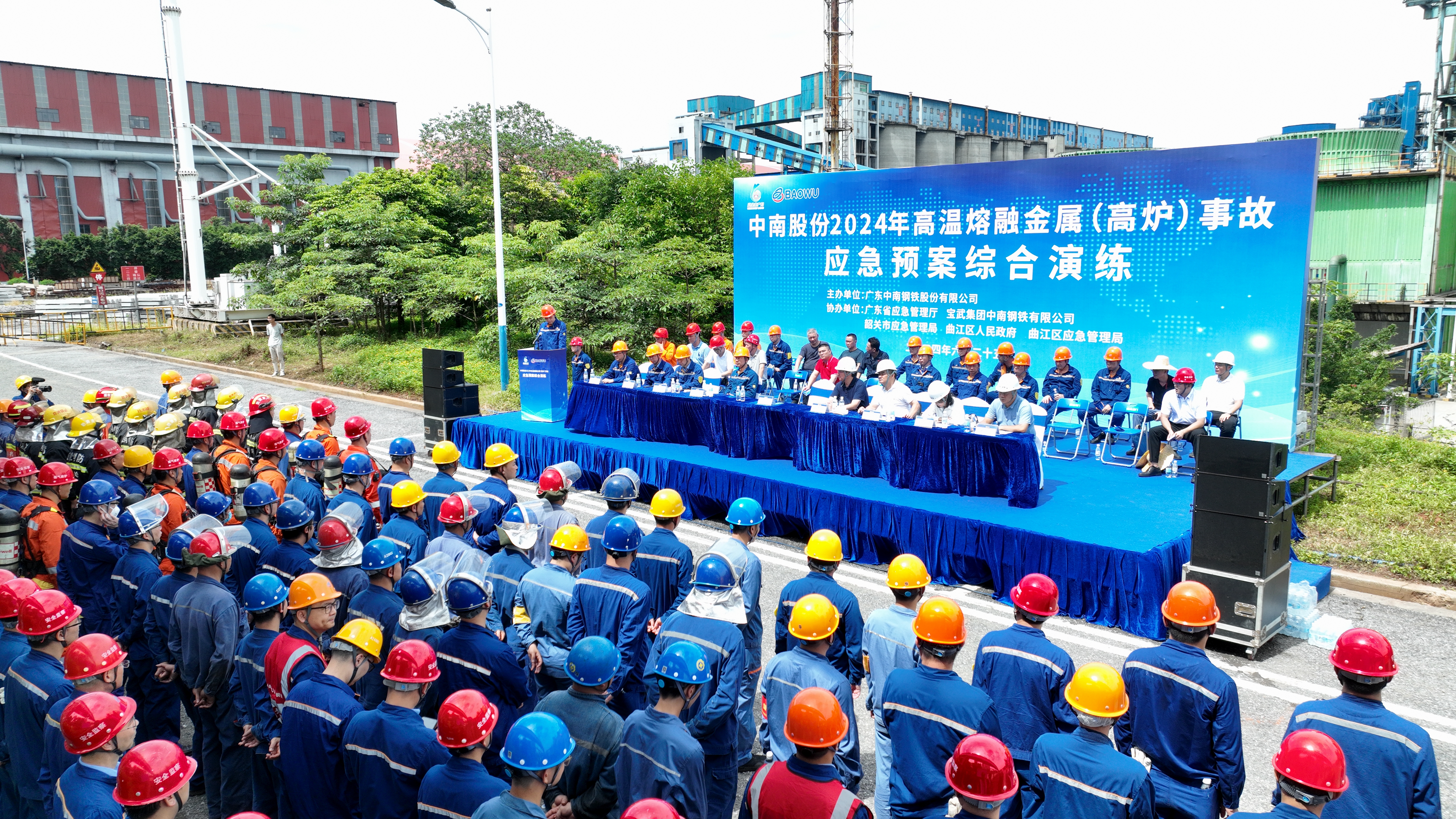 為(wei)進(jin)一(yi)步(bu)檢(jian)驗(yan)該(gai)公(gong)司(si)各(ge)部(bu)門(men)應(ying)對(dui)突(tu)發(fa)事(shi)故(gu)應(ying)急(ji)響(xiang)應(ying)速(su)度(du)和(he)處(chu)置(zhi)能(neng)力(li),以(yi)及(ji)現(xian)有(you)應(ying)急(ji)救(jiu)援(yuan)隊(dui)伍(wu)和(he)應(ying)急(ji)救(jiu)援(yuan)裝(zhuang)備(bei)的(de)充(chong)分(fen)性(xing)及(ji)合(he)理(li)性(xing),促(cu)進(jin)應(ying)急(ji)救(jiu)援(yuan)管(guan)理(li)水(shui)平(ping)不(bu)斷(duan)提(ti)升(sheng),6月25日,寶武集團中南股份在煉鐵廠高爐區域開展高溫熔融金屬事故應急預案實戰演練。廣東省應急管理廳、韶關市應急管理局、曲江區應急管理局有關負責人,中南鋼鐵(股份)有關領導,中南股份各廠部負責人等到場觀摩。