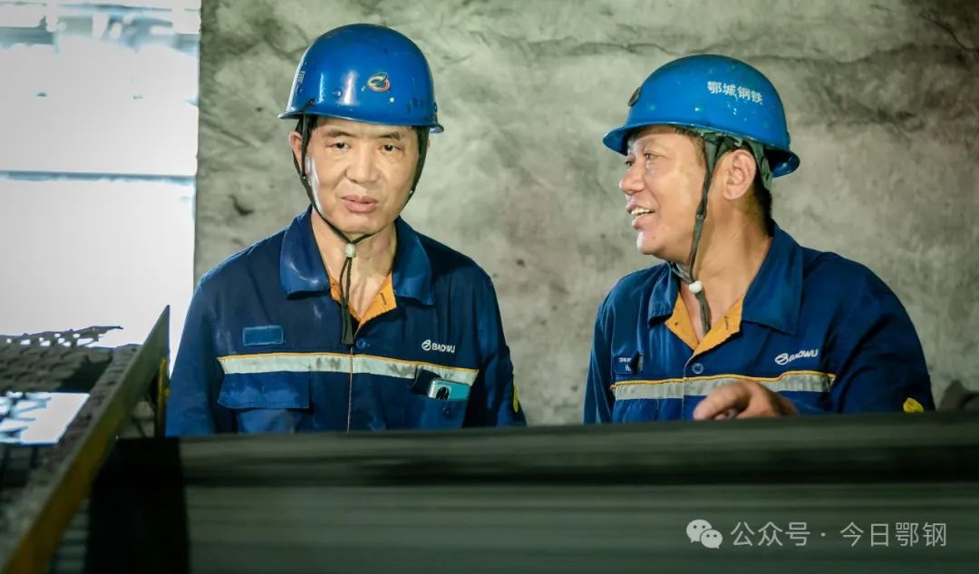 鄂城鋼鐵公司煉鐵廠焦化工序煉焦車間職工陳兵、肖海雄檢查皮帶運行情況。(桂多 攝)