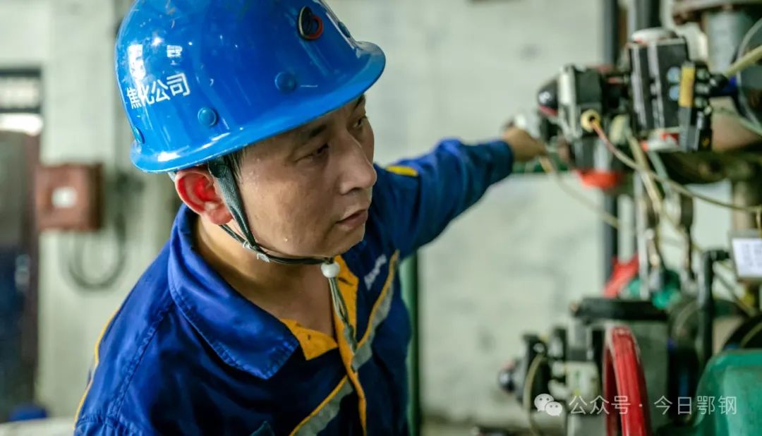 煉鐵廠焦化工序煉焦車間幹熄焦二班職工何林森配合檢修設備。(桂多 攝)