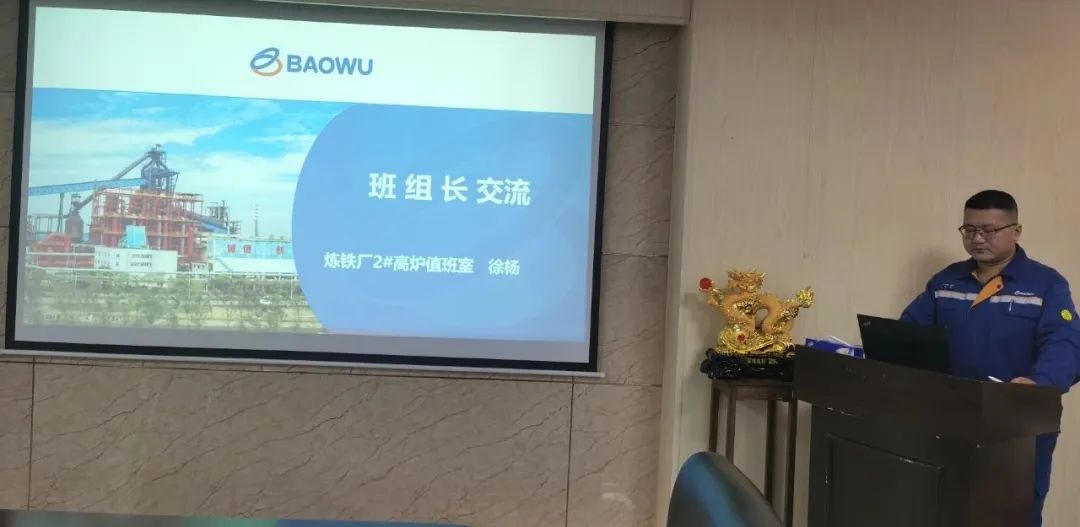 會上,煉鐵廠2號高爐值班室班組長徐楊分享了如何高效開好班前會的經驗做法。