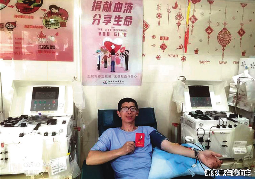 自從得知獻血能救人後,謝永春便走上了義務獻血之路,並暗下決心要一直獻下去,以幫助更多需要幫助的人。“其實獻血,不僅需要有健康的身體,還需要有良好的生活習慣。”謝永春說,為了提高自身血液質量,他改掉了許多不良生活習慣,並加強身體鍛煉。