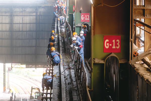 過guo去qu該gai公gong司si的de一yi些xie檢jian修xiu項xiang目mu需xu要yao外wai委wei,今jin年nian新xin鋼gang維wei檢jian中zhong心xin通tong過guo職zhi工gong轉zhuan崗gang及ji技ji能neng培pei訓xun,實shi現xian了le從cong協xie力li方fang到dao自zi有you職zhi工gong維wei修xiu保bao養yang的de工gong作zuo調tiao整zheng。圖tu為wei新xin鋼gang集ji團tuan維wei檢jian中zhong心xin檢jian修xiu職zhi工gong進jin行xing鋼gang一yi區qu鋼gang水shui接jie收shou跨kua行xing車che滑hua線xian更geng換huan作zuo業ye。