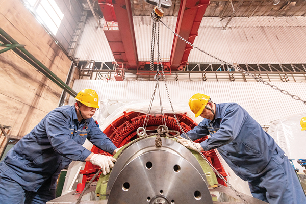 新鋼維檢中心堅持逢修必改,穩步提高維檢質量實現大幅降本目標。圖為新鋼維檢中心檢修職工對矽鋼薄板事業部精軋作業區F1、F2、F3電機進行擴容改造。