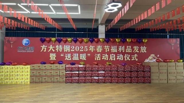 1月20日上午,方大特鋼在職工活動中心隆重舉行2025年春節福利品發放暨“送溫暖”活動啟動儀式。該公司此次春節福利品包含牛肉、羊肉、腐竹、墨魚和食用油,其中牛肉、羊肉和腐竹均為該公司在甘肅省臨夏州東鄉族自治縣的鄉村振興企業生產,在關心關愛員工、精準幫扶該公司建檔員工及家庭的同時,積極助力鄉村振興工作發展。(徐加平)