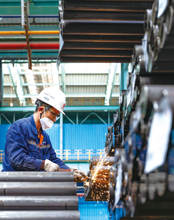 圖為馬鋼特鋼公司職工正打磨出廠產品。