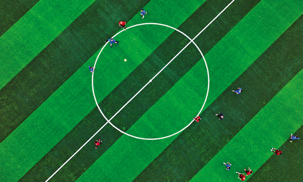 圖為足球比賽航拍現場。