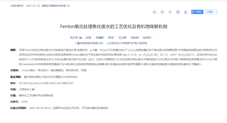 2023年,她牽頭撰寫的《一菌多用》等2篇相關芬頓工藝,菌株種類的論文,登上SCI期刊(全球優質科學論文,學術期刊)。
