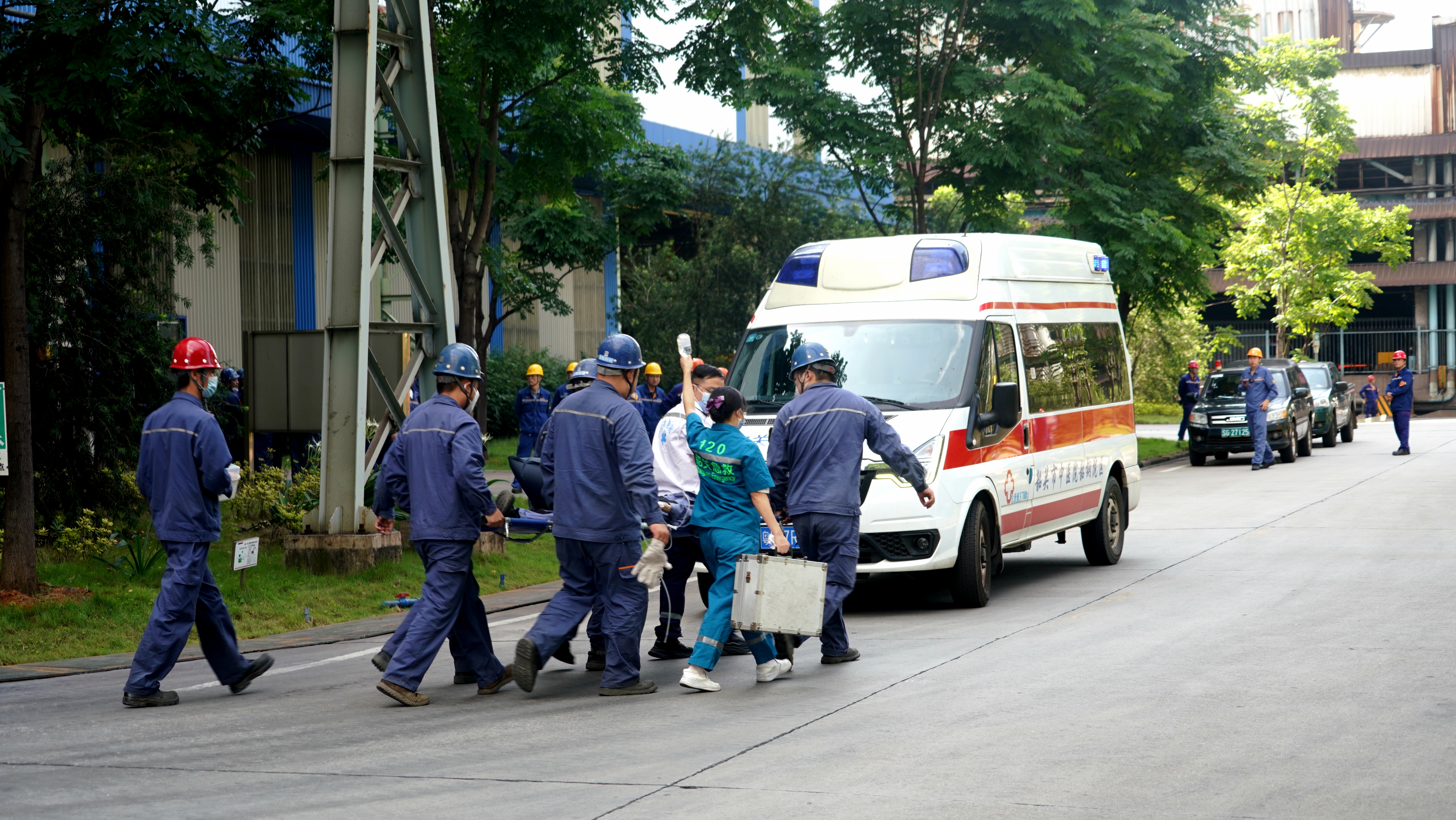 煉鋼廠和安保部相關人員、公司應急大隊、煤氣防護站、金藝環境監測、韶關市中醫院韶鋼院區醫療急救隊、曲江區消防救援大隊等共同參與了現場演練。