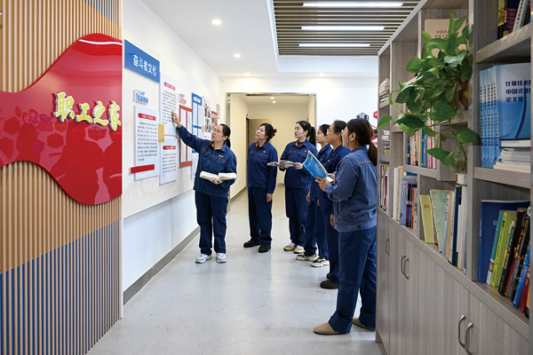 圖為該班組成員利用工餘時間進行企業文化學習。