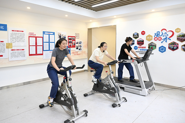 圖為工餘時間,該班組成員進行健身活動。
