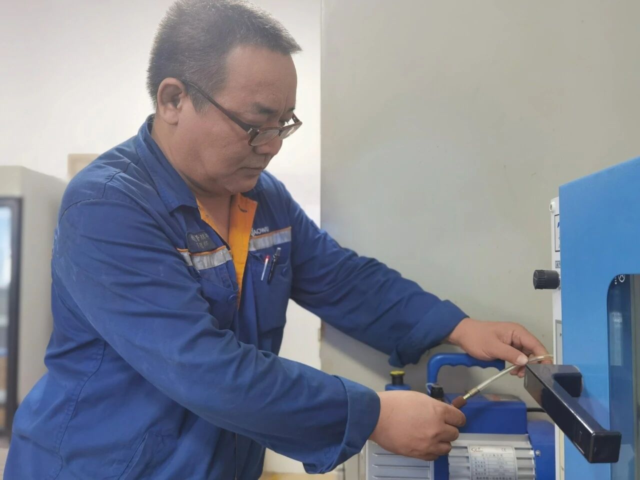 他盯著真空泵琢磨半天,找來連接管和閑置容器,自製了個“油煙吸收瓶”—— 讓油煙通過管道導入吸收瓶,難題迎刃而解。沒花一分錢新增成本,不僅保住了“老夥計”,還省了2000元采購費,“積少成多,降本就得這麼摳”。