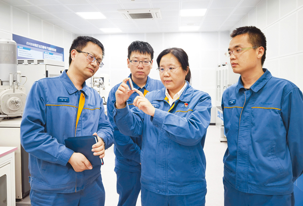 拿著從正式鋼板上取回的試樣,莊迎與同事探討該如何將工藝參數進一步優化,讓產品性能提升一個新高度。