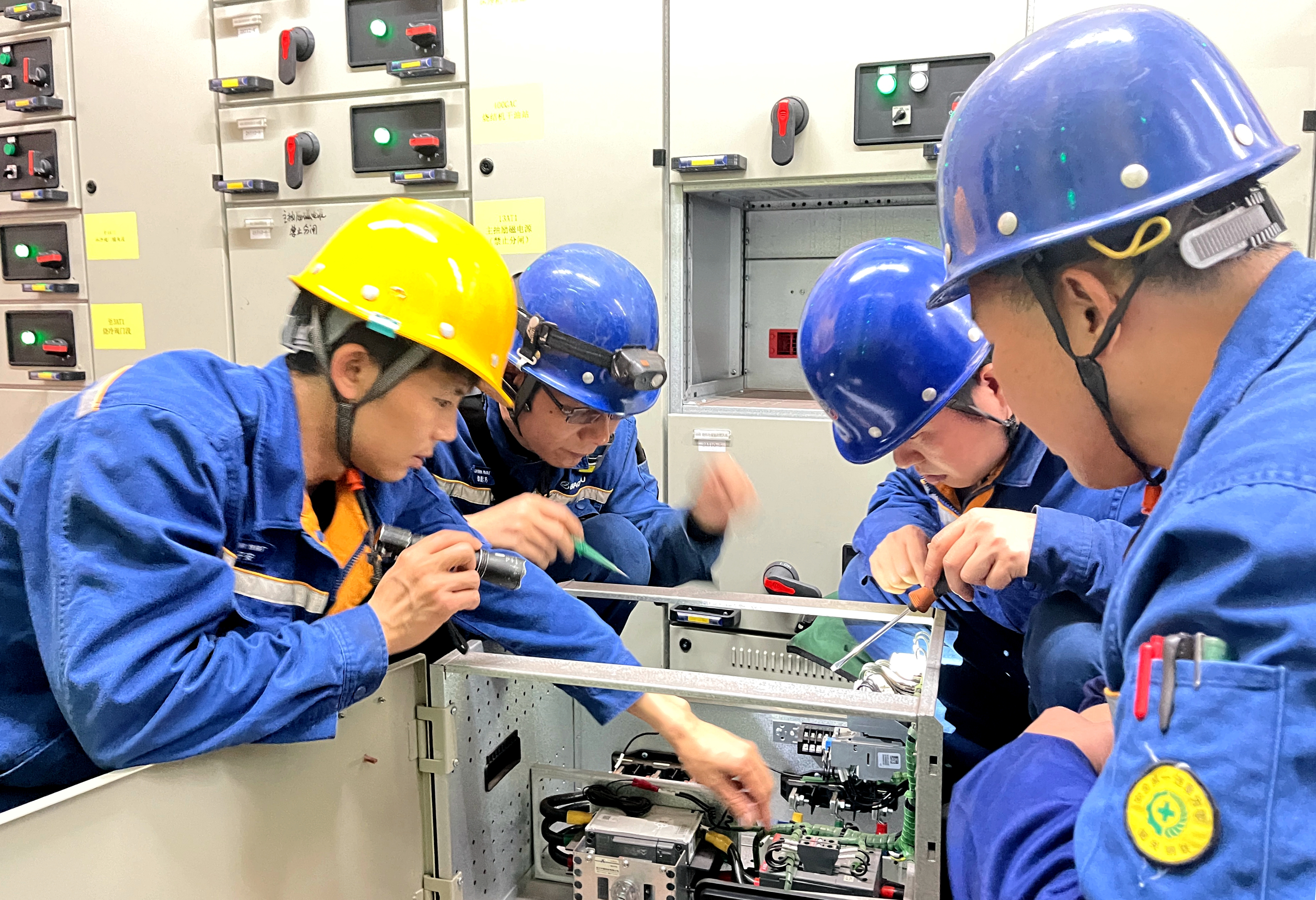 在班長陳子安的帶領下,班員陸陸續續對備修區的設備進行了評估和修複。從電源櫃到散熱風扇,從UPS電源的修複到小型振動器1.5kW電機的維護,每一次修複成功都帶來了滿滿的成就感。
