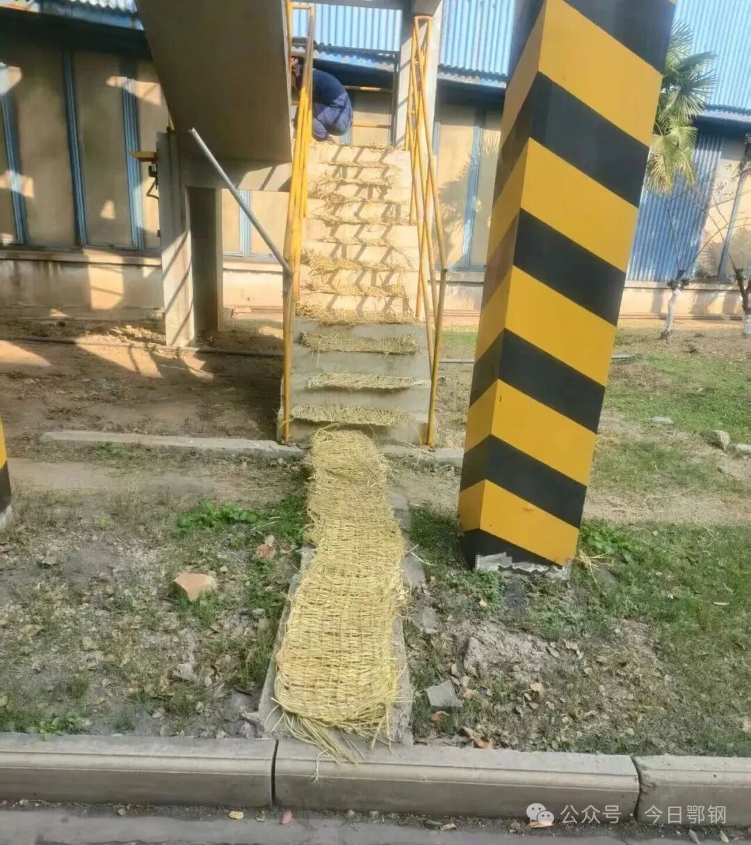 針對雨雪天氣導致地麵、樓梯、平台濕滑風險,在室外樓梯、走道、消防栓等區域鋪設防滑草墊、稻草或采取防滑措施,並督促員工規範穿戴防滑鞋,避免“滑出來的事故”。(晏芳、袁國榮、黃亞群)