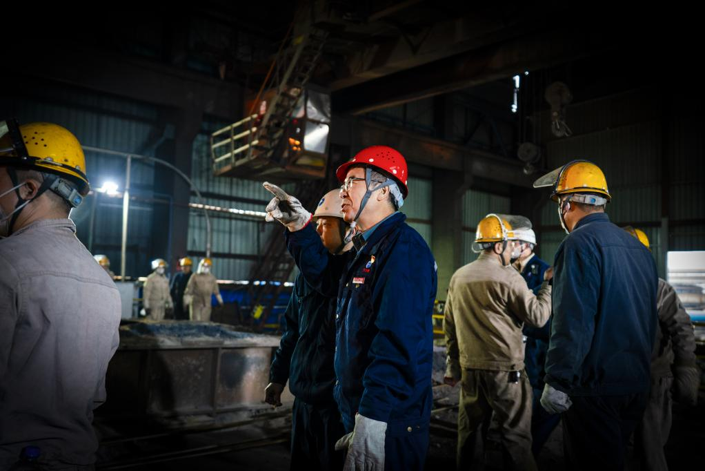 與此同時,該公司4號高爐爐台也是一片忙碌景象。正在值班的煉鐵廠高爐二車間4號爐副爐長楊忠旺目光專注,正緊盯出鐵口。不多時,熾熱的鐵水奔湧而出,紅光映照著工人們堅毅而專注的麵龐。“越是節假日,越要繃緊安全這根弦。”楊忠旺的話語樸實卻堅定,“隻有看到鐵水平穩流出,心裏才真正踏實。”在他看來,高爐的每一次順利出鐵,都是向新年獻上的一份厚重賀禮。