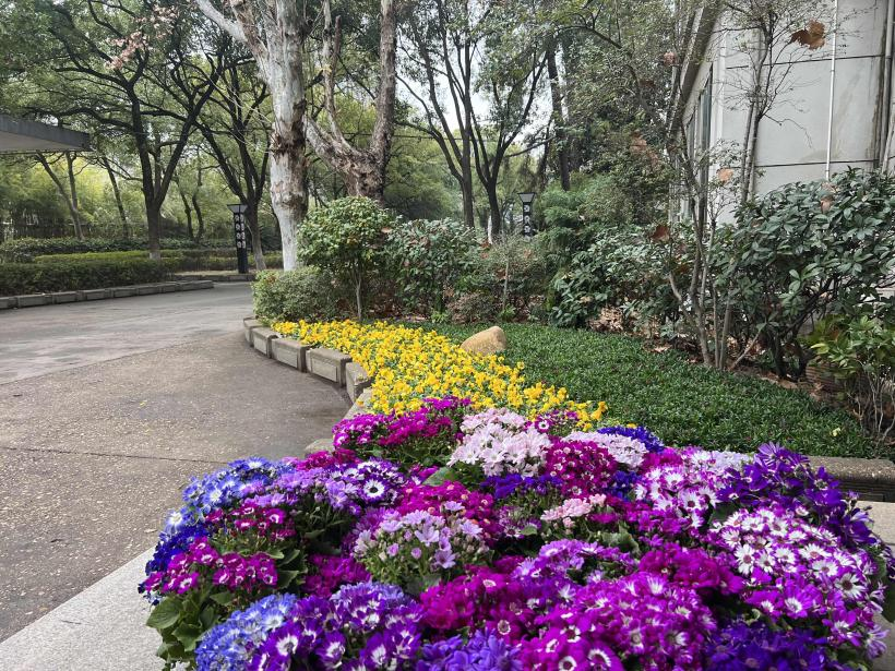 jufangdateganghuanjingguanlibuzhurengongchengshizhangyulongjieshao,jinnianchunjihuahuibuzhizaipinzhongxuanzeshangjiangusecaidapeiyuhuaqiyanxu,quebaojingguanxiaoguodecengciganyuchijiuxing;在點位布置上,重點聚焦主幹道、重要景觀點及員工集聚區域,做到“處處有景、時時見花”。