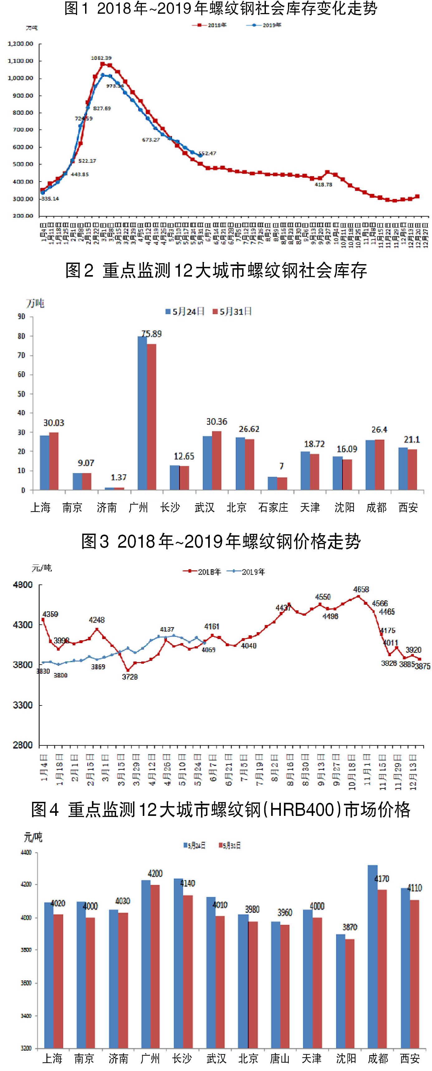 5月27日~5月31日,螺紋鋼社會庫存為552.47萬噸,環比下降17.36萬噸,降幅為3.14%。重點監測的12個城市庫存漲跌互現,其中沈陽、西安、廣州等城市庫存下降較大。