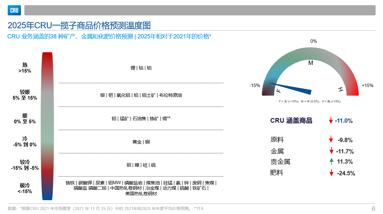 值得注意的是,CRU有關於各主要大宗商品的定期報告,還頗具新意地發布了大宗商品的溫度表。
