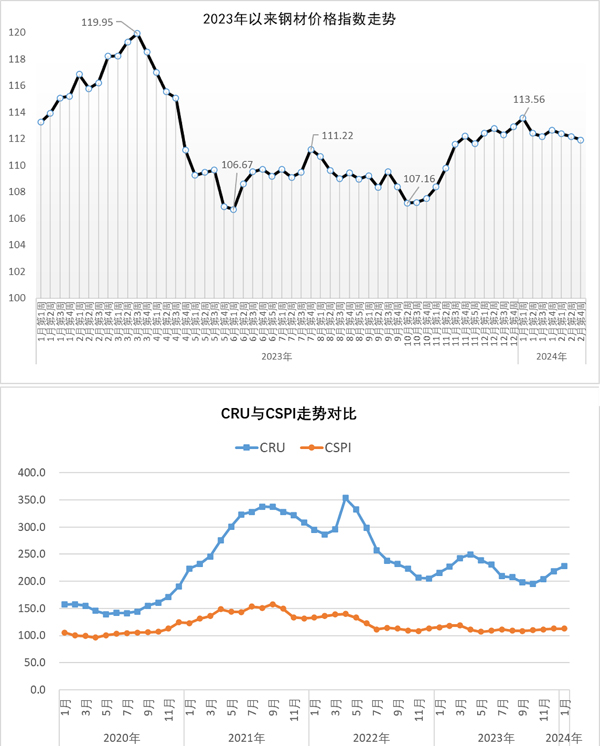 2月19日—2月23日當周,國內鋼材價格指數繼續下降,長材價格指數、板材價格指數均有所下降。