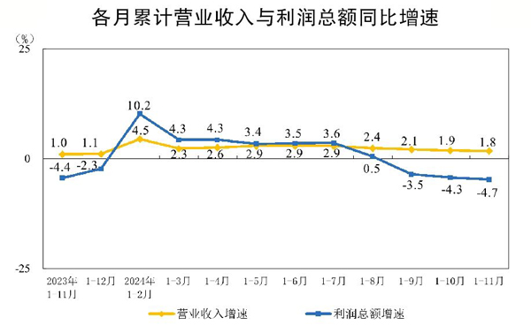 本報訊 2024年1月—11月份,全國規模以上工業企業實現利潤總額為66674.8億元,同比下降4.7%(按可比口徑計算)。其中,黑色金屬冶煉和壓延加工業利潤同比下降83.7%。