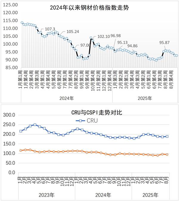 9月8日—9月12日,國內鋼材價格指數環比略有下降,長材價格指數、板材價格指數均有所下降。