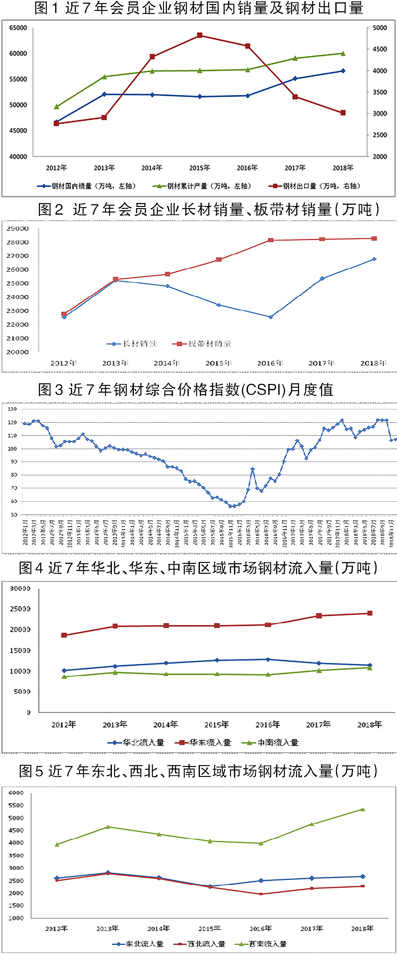 參與中國鋼鐵工業協會營銷統計的會員企業需要按月上報鋼材產量以及各鋼材品種流入到各區域市場的數量。本文著重分析會員企業近7年國內銷售的鋼材在各個區域市場的流入情況,通過鋼材流入量變化來分析各區域市場環境及鋼材供需關係的基本情況。