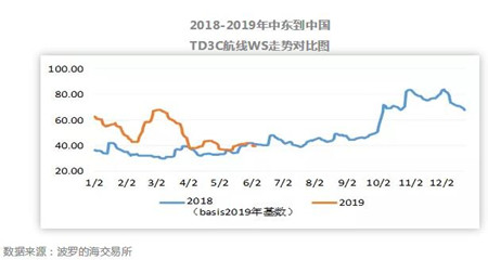 5月,原油輪市場“黑天鵝”事件頻發,運價低位徘徊。一季度交付高峰後,油輪船隊規模維持相對穩定。5月,波交所原油輪運價指數BDTI收於636點,比月初微漲0.2%;VLCC中東至中國TD3C線WS指數平均39點,環比下降2.6%,與相同基礎費率的2018年WS指數相比,同比上漲6.1%;TCE平均9979美元/天,環比下降1.9%,同比上升41.8%。成品油輪方麵,5月中東至日本7.5萬噸級船TCE平均14999美元/天,環比上升29.7%;5.5萬噸級船TCE平均11706美元/天,環比上升59.2%;美灣與歐洲間MR型成品油輪航線平均TCE為10776美元/天,環比下降22.3%。